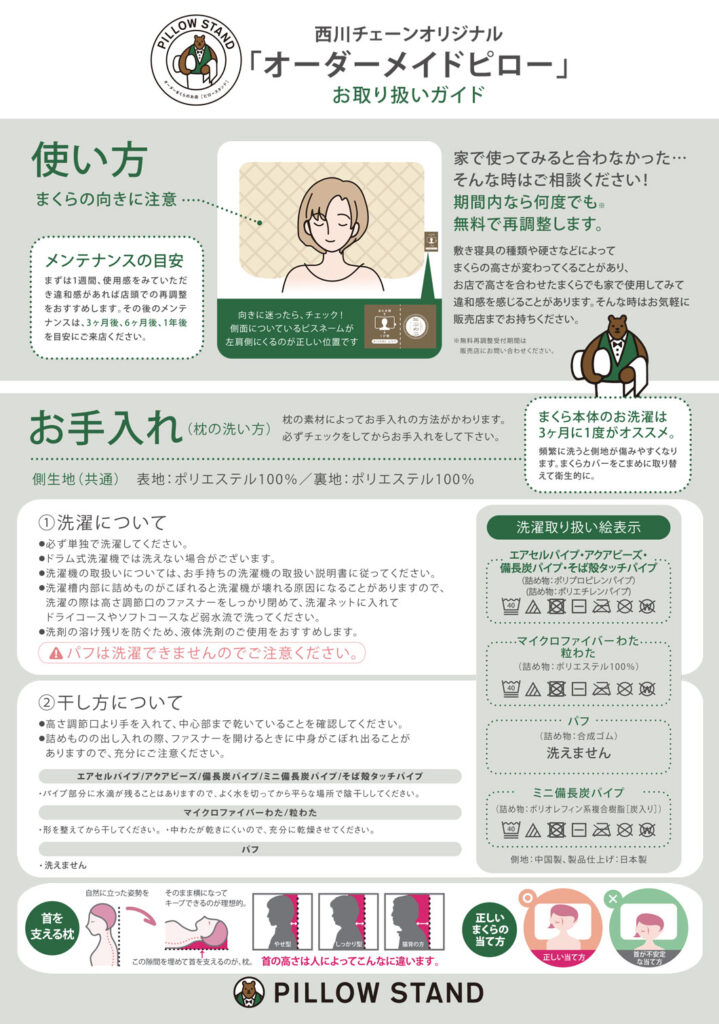 ピロースタンドのオーダーメイド枕は、ご購入いただくと無料メンテナンスがついています。